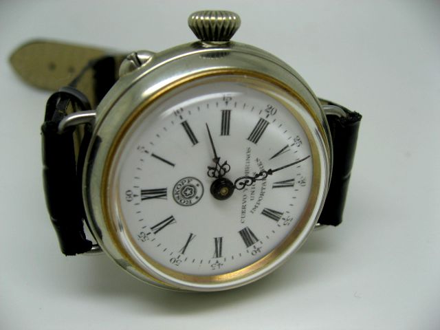 - 1950年代前後に製造されたクエルボ・イ・ソブリノス/Roskopf、ダブルネーム、ポーセリンダイアル(琺瑯文字盤)、手巻き時計です。