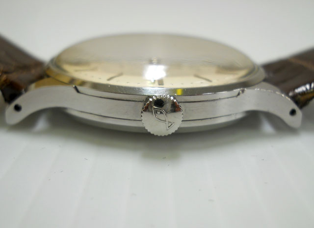 ケースはステンレススチールで、ポリッシュが掛った形跡が無く、角の立った精悍な形状を保っており、アンティークとしては申し分の無いコンディションです。